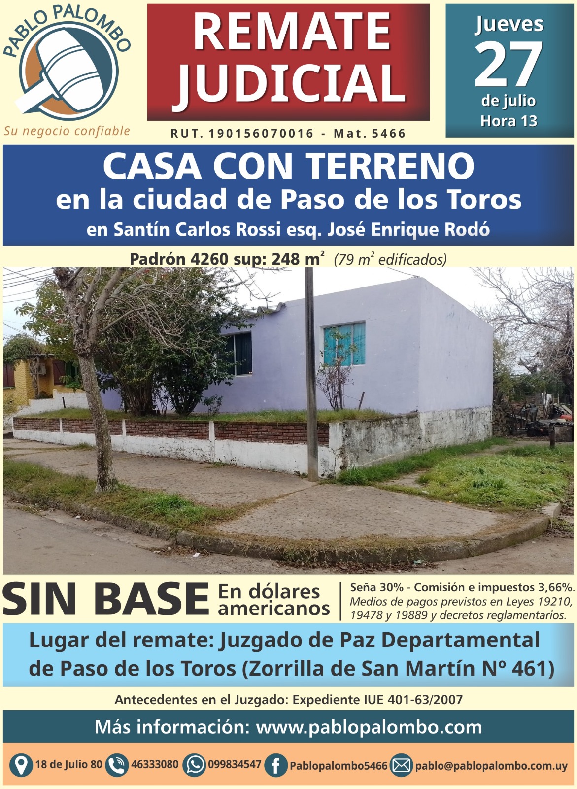 Remate Judicial Jueves 27 de Julio Hora 13
