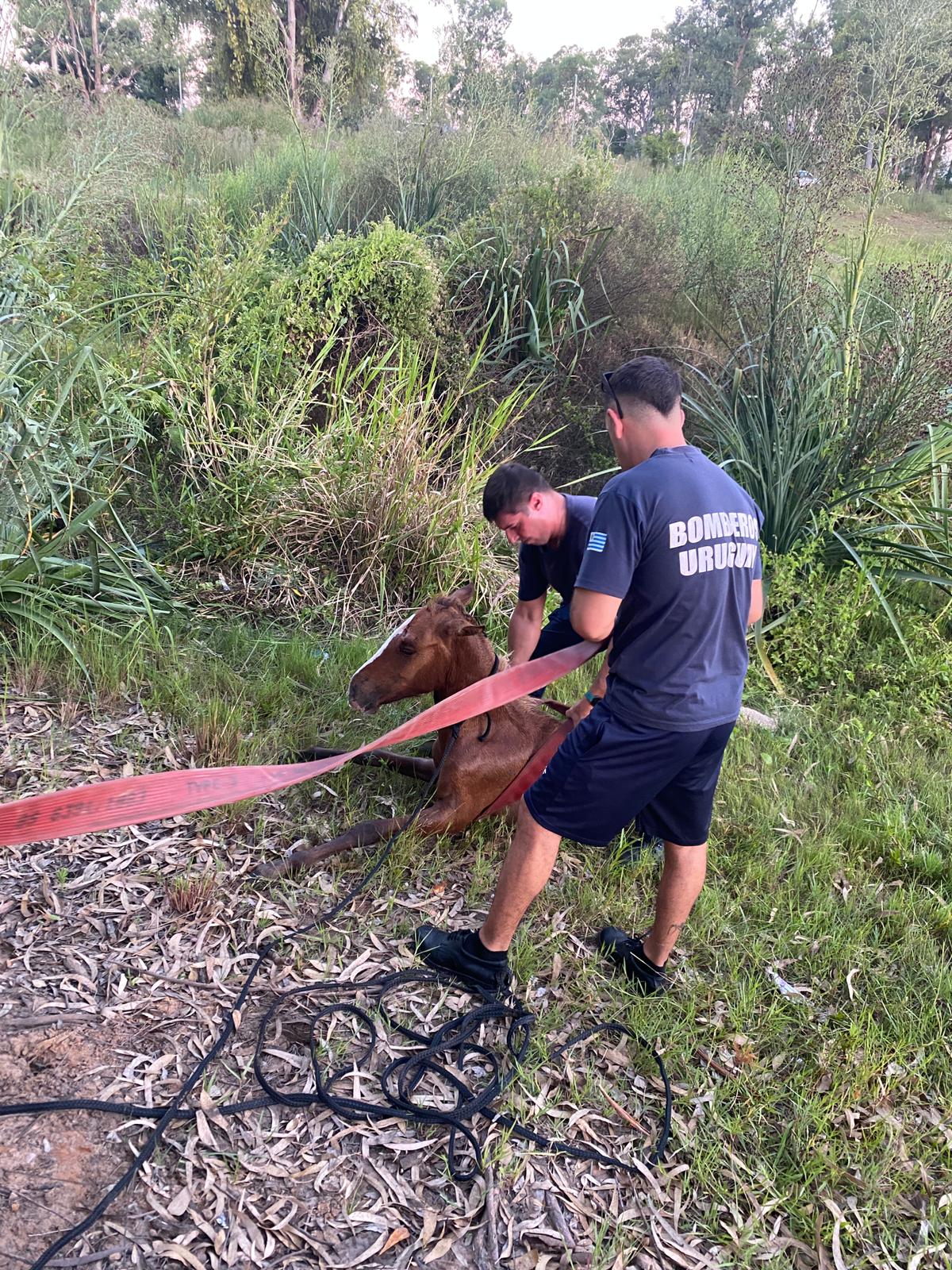 Una vez en el lugar se constata que se trataba de un potrillo, procediendo al rescate exitoso mediante métodos manuales y nudos de rescate logrando así sustraerlo.