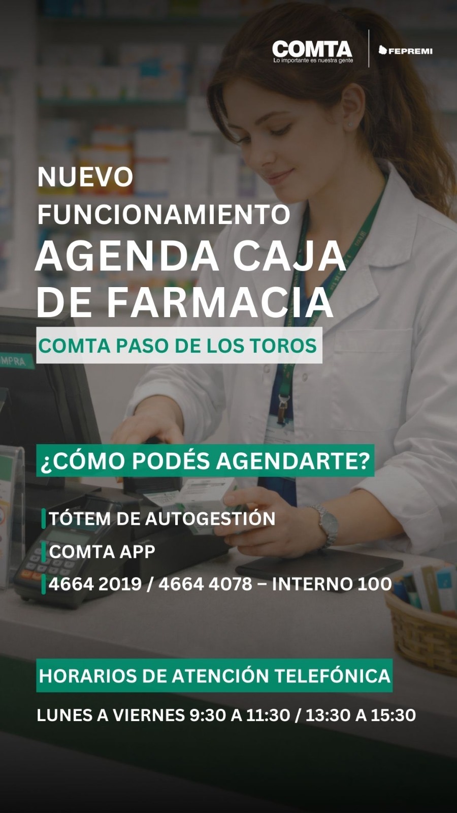 COMTA informa sobre Agenda Previa para Caja de Farmacia. Aquí los detalles.