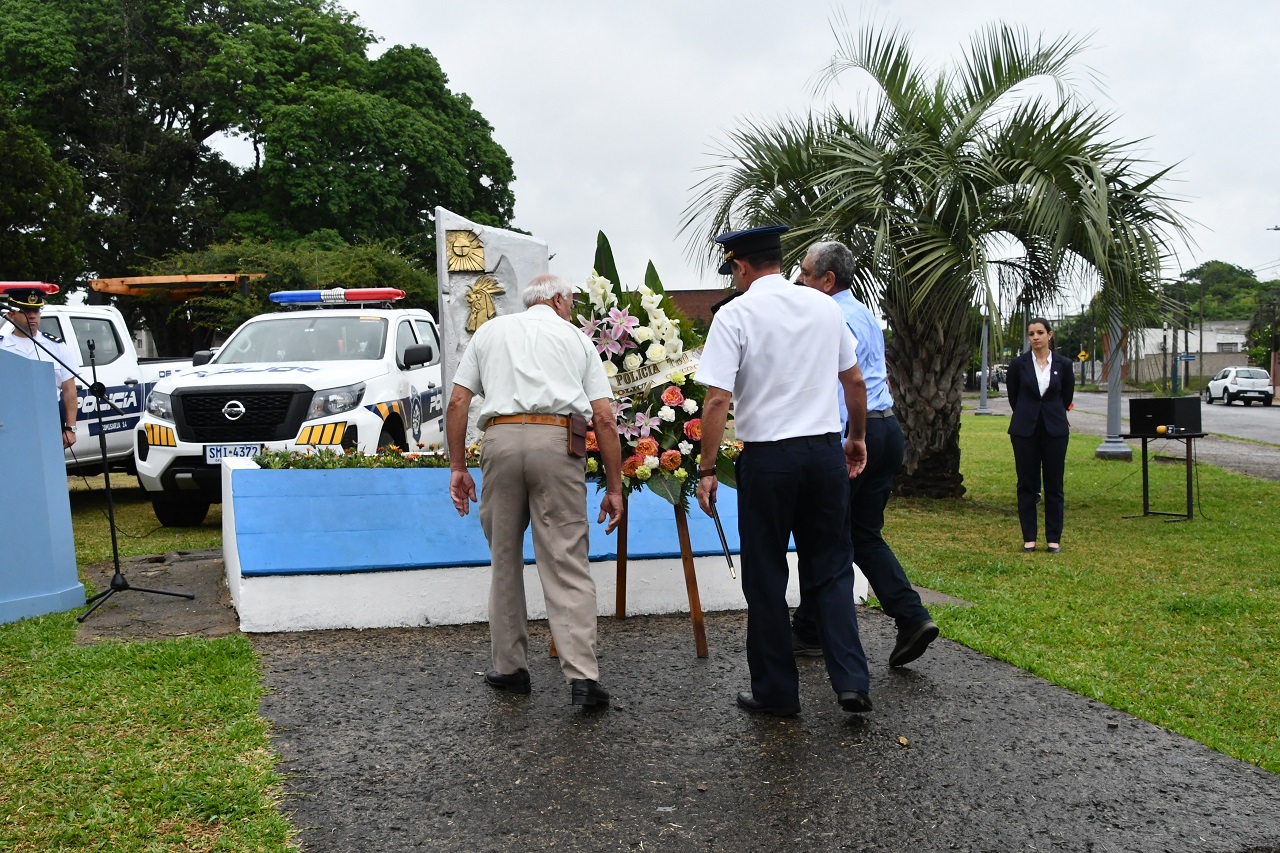 Las palabras alusivas a la fecha estuvieron a cargo del Sr. Jefe de Policía, Crio. Gral. (R) Jonh SARAVIA, además, se realizó la colocación de una ofrenda floral con la participación de representantes de la Asociación de Retirados Policiales.