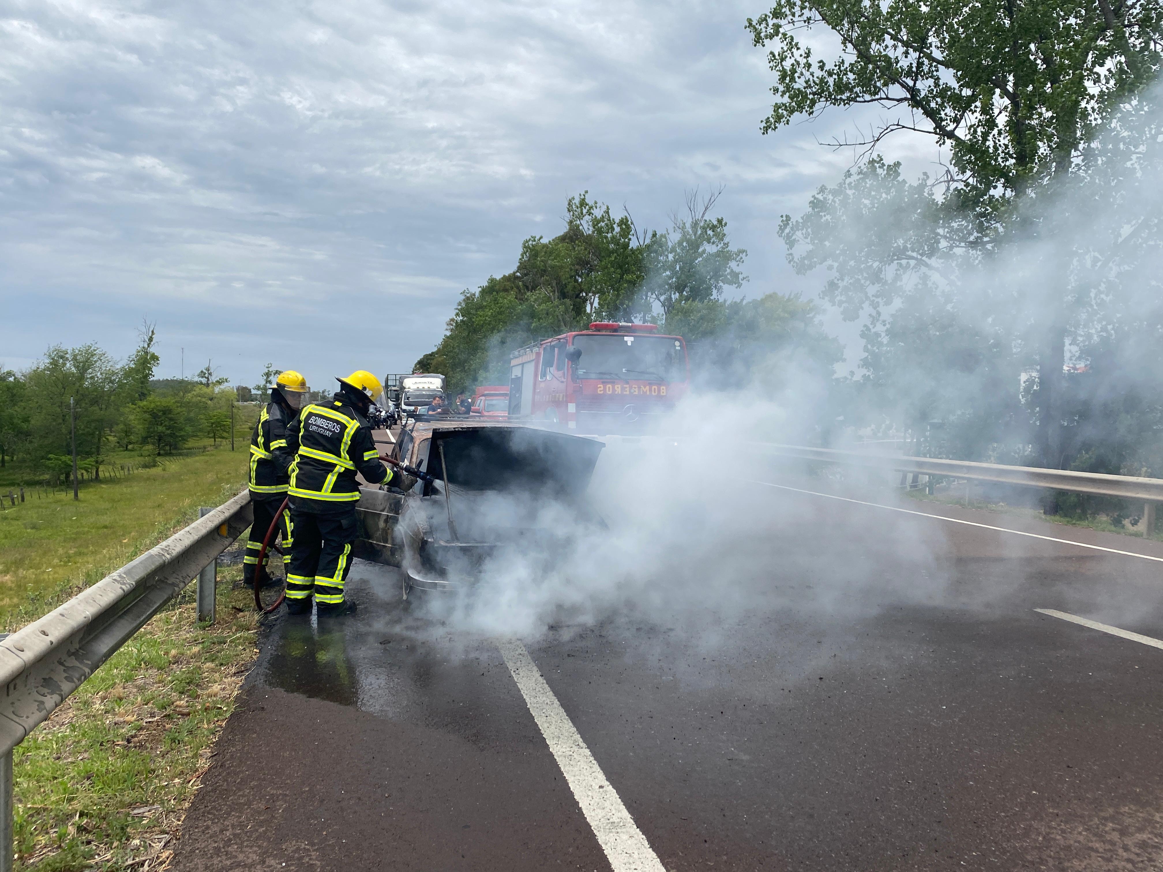 Presente en el lugar solicitado a la hora 12:15 se pudo constatar que se trataba de un incendio generalizado en vehiculo liviano (automóvil) marca Volkswagen modelo Brasilia año 1976 matricula SAF 3649.