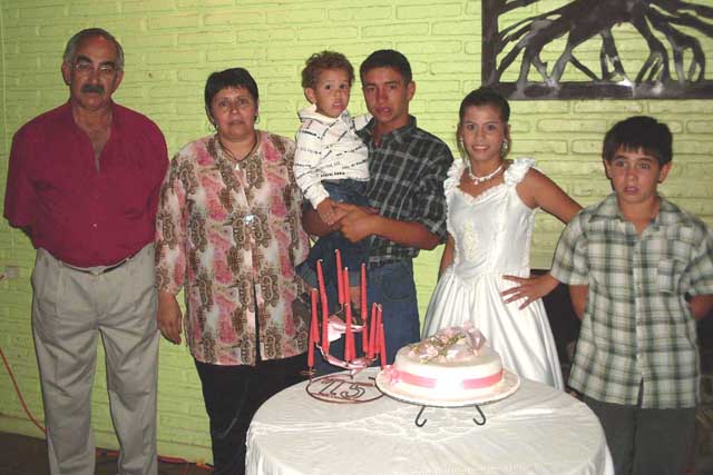 En su domicilio de calle Gral Laguna celebró FERNY MELO VAZQUEZ sus 15 años en compañía de su madre Laura, sus hermanas Mª del Rosario, Nadia y Mª José, su papá del corazón Cafa, familiares y amigas. La torta fue elaborada por su hermana Nadia