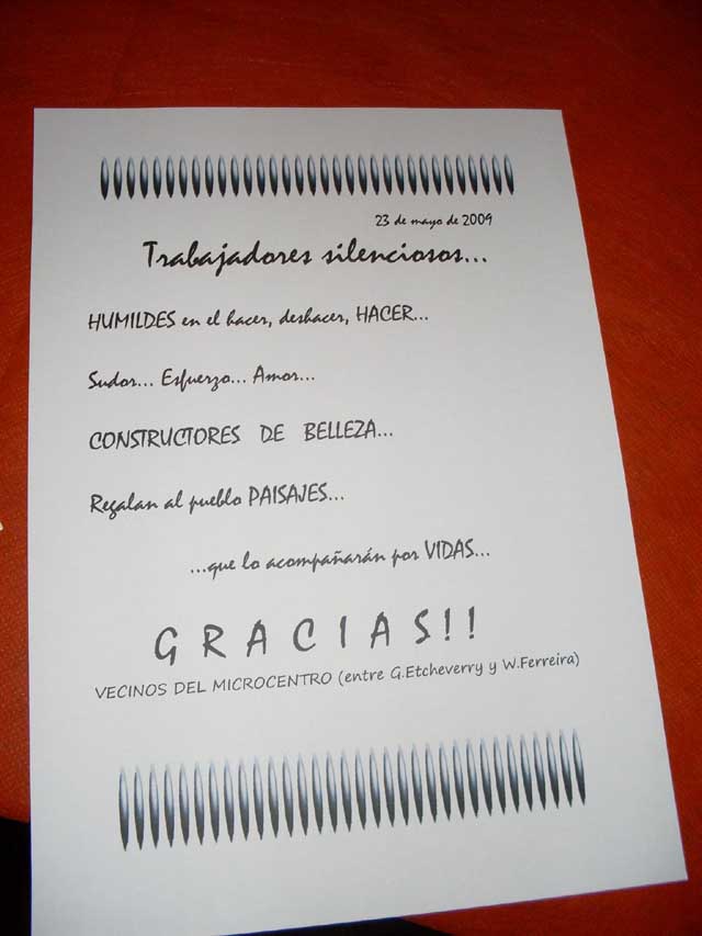 Vecinos y comerciantes de calle 18 de Julio, entre W Ferreira y G Etcheverry, donde se realizó la segunda etapa del Micro Centro isabelino, al culminarse la obra, brindaron a los obreros municipales un almuerzo en reconocimiento por el buen trabajo realizado.