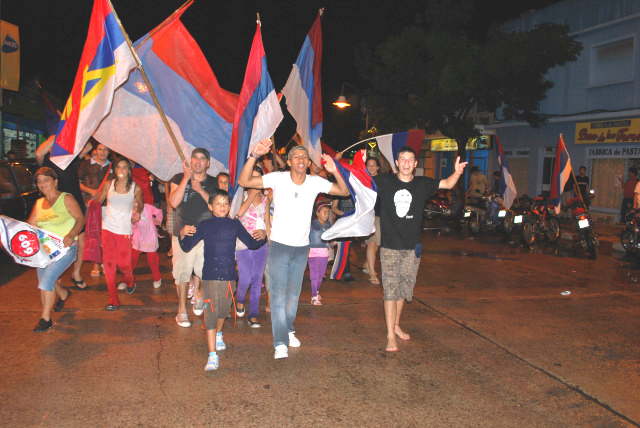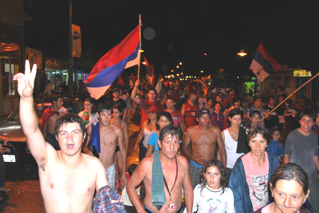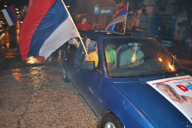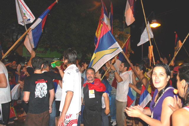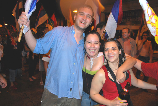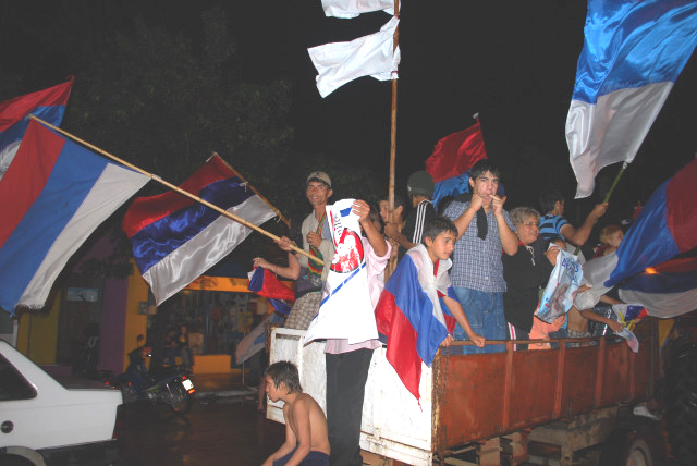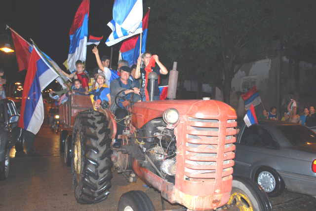 Luego de conocido el resultado del balotaje que diera como ganadora a la fórmula Mujica Astori, el pasado domingo, los fretentamplistas de Paso de los Toros, con gran entusiasmo, salieron a festejar por 18 de julio, a pesar de la lluvia.