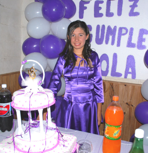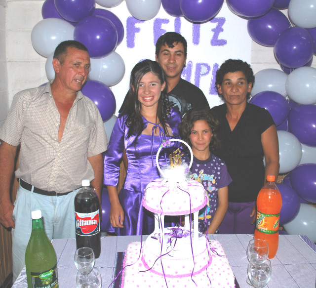 En Complejo Paso de los Toros celebró PAOLA ORTEGA sus 15 años. Junto a ella compartieron su padre Javier, su novio Juan Carlos, familiares y amigos. La quinceañera lució un vestido violeta, y fue peinada y maquillada por Marcela. La torta fue responsabilidad de Estela Pimienta