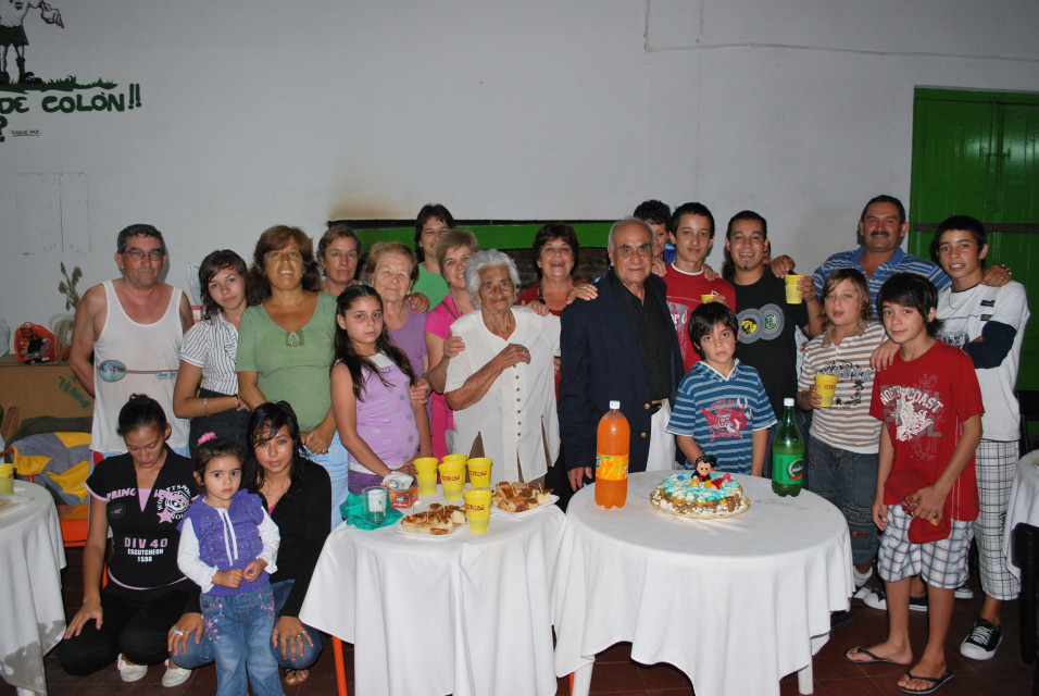 El Grupo de Danzas Santa Isabel se dio cita en instalaciones de Club Colón para celebrar los cumpleaños de dos de sus integrantes. Uno de ellos es DIEGO VIDELA, quien cumplió 16 años y el otro JOSÉ LUIS GARCÍA quien festejó sus 75, y además estuvo acompañado por su madre, la señora AGRIPINA MEDINA de 94 años.