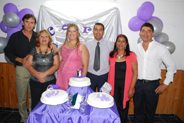 Los jóvenes JHONATAN RODRÍGUEZ y CAROLINA MÁRQUEZ se casaron en el Juzgado de Paz de nuestra ciudad. Por la noche celebraron con familiares y amigos en el salón de Complejo Paso de los Toros. En la nota gráfica vemos a los novios junto a sus padres Iris y José Luis, Sandra y Oscar. La fiesta contó con la animación musical de Walter´s Discotheque. Sandra fue la encargada de elaborar la torta.