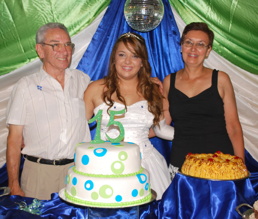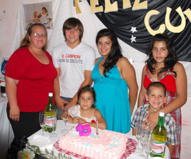 NADIA YAKIMA REBOLLO MONTERO cumplió 15 años y lo celebró junto a su mamá Magela y hermanos Angeline, Pablo, Miguel y Sofía, abuelos Miguel y Leonor familiares y amigos en su domicilio de calle Gral Laguna. Desde el Sinaí recibió el cariño de su papá, destacado en Misión de Paz. La torta fue elabora por su mamá.