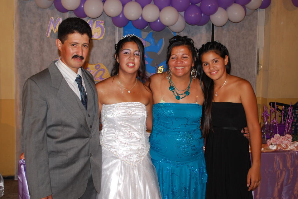 EVELIN FEIRER NIEVES festejó sus 15 años en el salón de Complejo Charrúa. Junto a ella compartieron sus padres Richard y Andrea, hermanos Mauro, Ana Belén y Angie Soledad, familiares y amigos, en especial su tío Fernando que vino desde Maldonado. La quinceañera lució un hermoso vestido blanco con detalles bordados en tono fucsia y complementado con chalina al tono, obsequio de su madrina Verónica, confeccionado por Mary Sosa; el peinado fue obsequio de su amiga la estilista Ana Godoy. La decoración se basó en tonos fucsia banco y negro y estuvo a cargo de mamá, tía y amiga; la torta, decorada en los mismos tonos, fue elaborad por su tía Teresa Saganga La fiesta de EVELIN contó con la actuación en vivo del grupo El Yuyo. La música fue de Disco Sueños con la selección de DJ Pedro La alegría de esta noche quedó registrada por Patricia Barros en fotografía y video de Wilmar Rodríguez Filmaciones Digitales