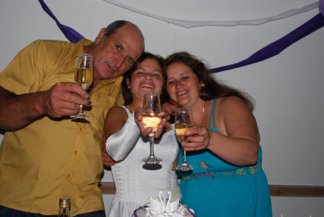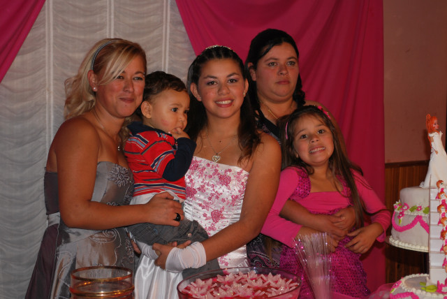 Los salones de Club Democrático se vieron engalanados en tonos fucsia y blanco para darle marco a la noche de 15 de ALDANA PAMELA PARAFITA CAMEJO. Ingresó a su fiesta con el tema de Ricky Martín “Tal vez”, acompañada por su amigo Edinson, fue recibida con emoción por sus padres José y Ana, sus hermanas Rossana y Natalia, sobrinitos Romina y Felipe, familiares, amigos y compañeros de liceo Nº 1, donde cursa cuarto año. También contó con la compañía de familiares que vinieron desde Estados Unidos, Rivera y Montevideo. ALDANA lució un hermoso vestido blanco con detalles fucsia, a la rodilla, confeccionado en la ciudad de Rivera. La decoración del salón estuvo a cargo d eJulio Suárez y la selección musical fue de Adolfo Manuel Álvarez y Juan Martín “Ruso” Angelo