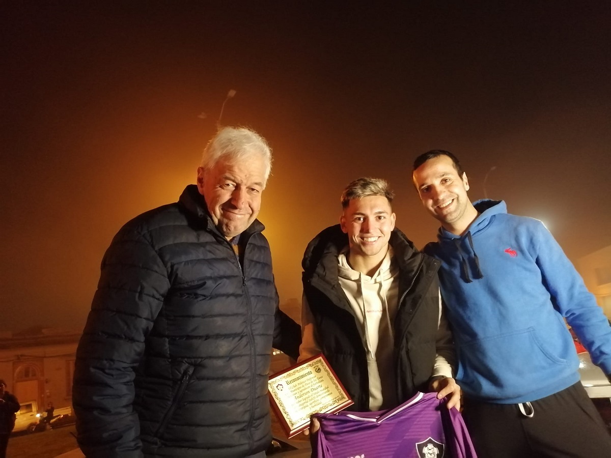 El Alcalde Luis Irigoin por el Municipio, y Agustín Fessler por el Club Defensor, hicieron entrega de una placa de reconocimiento y presentes.