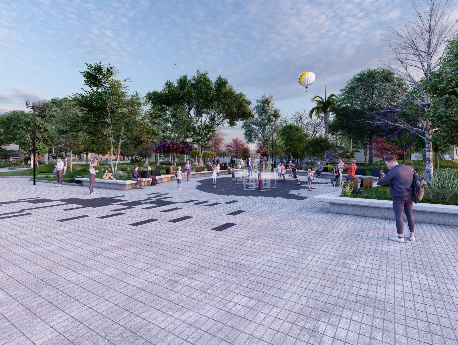 Se trata de una intervención integral en pavimentos, recambio total del piso, equipamiento urbano, nuevos bancos, luminaria led inteligente, fuente, rediseño paisajístico, recorridos peatonales, poniendo en valor los elementos patrimoniales que son parte de la identidad de los Isabelinos.