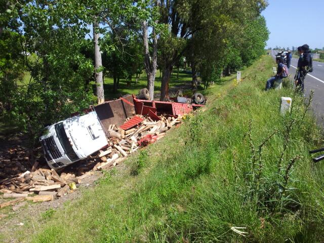 Volcó camión con madera en ruta 5 frente a Artillería