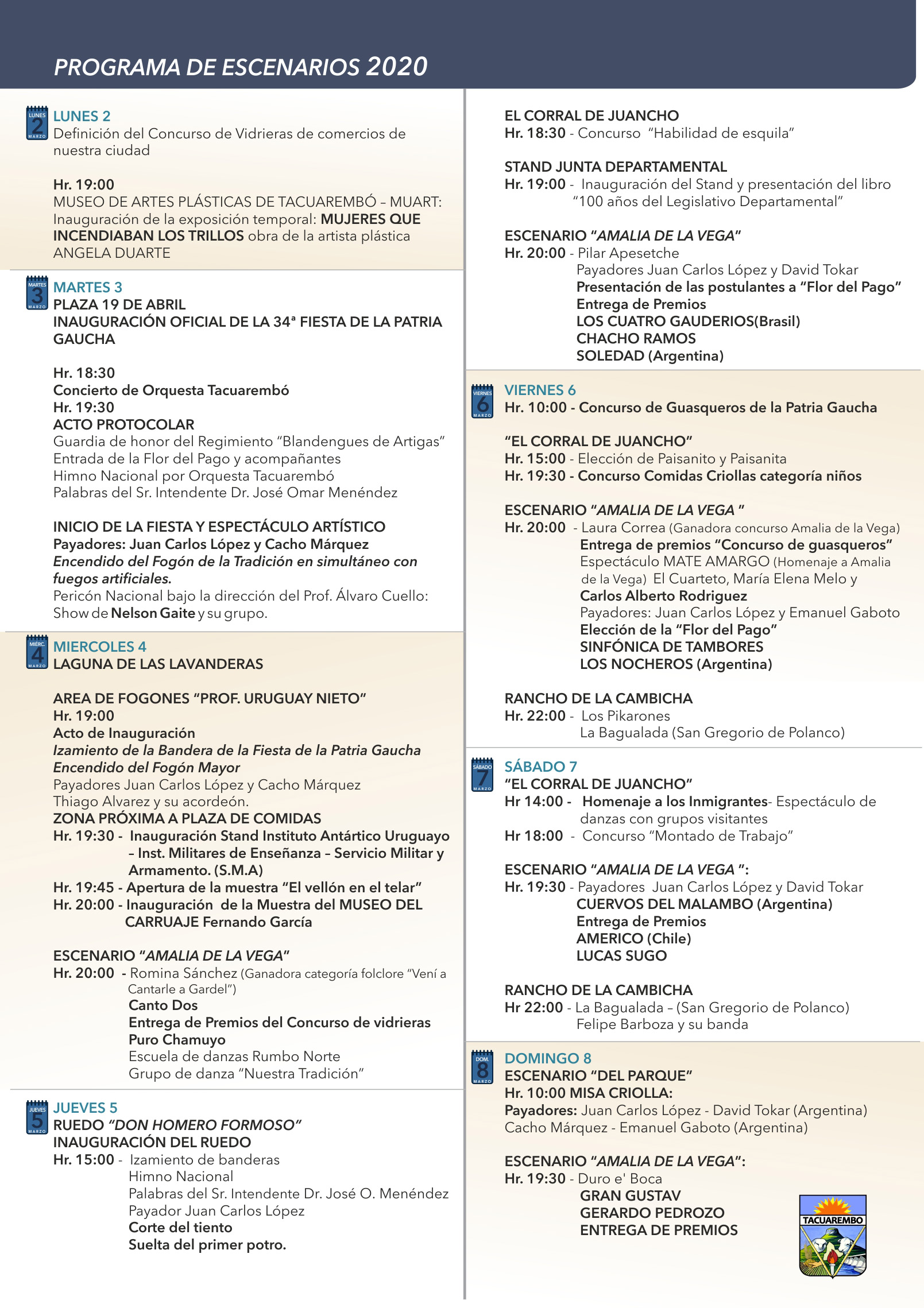 La 34a. Fiesta de la Patria Gaucha ya esta en marcha, ayer miercoles se realizó la ceremonia inaugural en Plaza 19 de Abril. En la ocasión el Intendente Dr. José O. Menéndez brindó un mensaje y se encendió el Fogón de la Tradición.