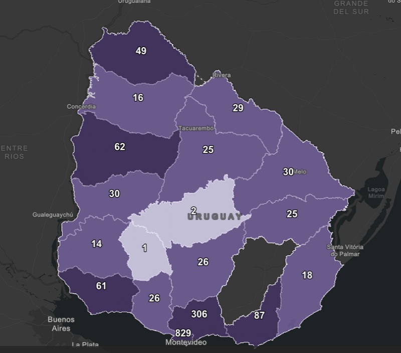 Al día de hoy todos los departamentos registran casos activos, excepto Lavalleja.