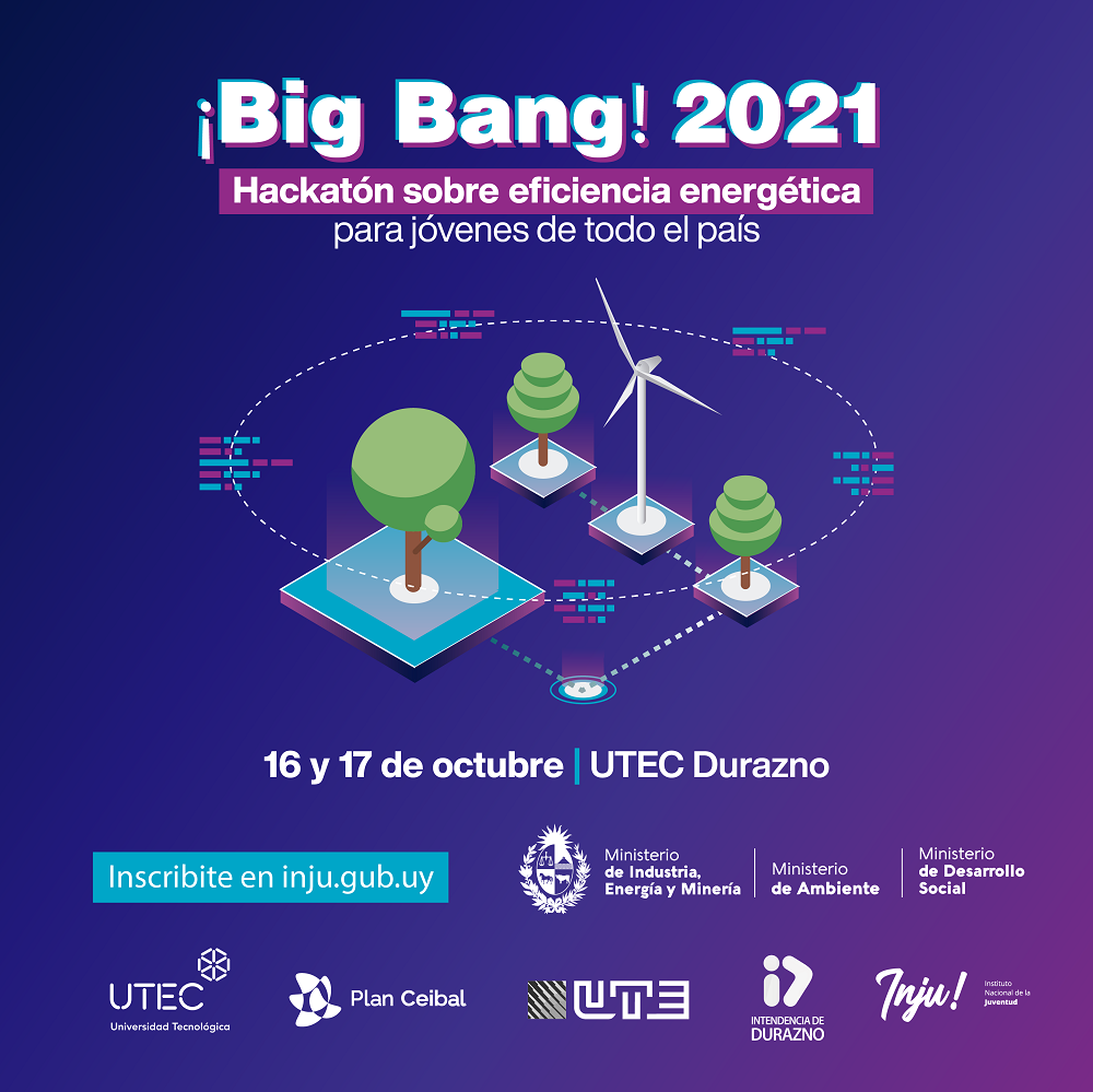 Este próximo fin de semana, el 16 y 17 de octubre, se estará desarrollando la Hackatón ¡Big Bang! 2021 cuyo tema central será Eficiencia Energética. Se realizará en el departamento de Durazno, en la regional centro-sur de la Universidad Tecnológica (UTEC)