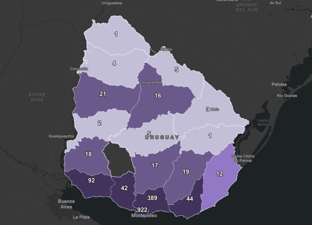 Al día de hoy todos los departamentos registran casos activos excepto Flores.