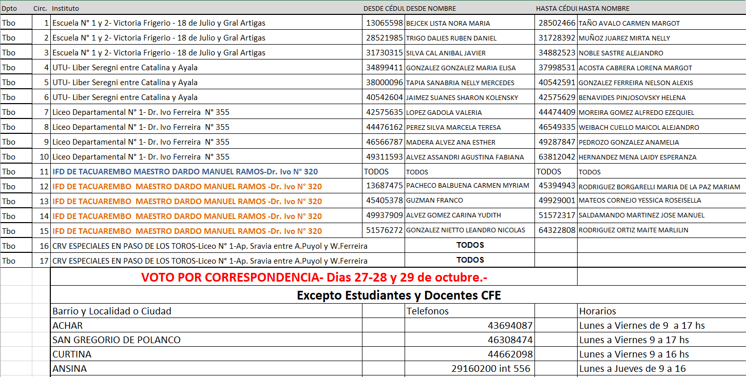 Elecciones ATD ANEP-CFE-CODICEN- 30 DE Octubre 2021 - PLAN CIRCUITAL TACUAREMBÓ