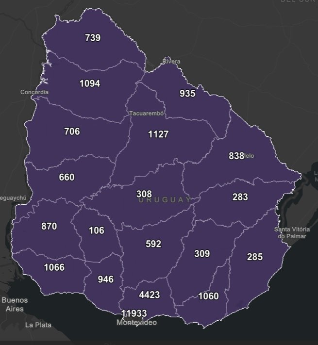 De acuerdo a la información proporcionada por el Ministerio de Salud Pública (MSP), hoy se llevaron a cabo 6.538 análisis y se detectaron 1.588 nuevos casos de Coronavirus COVID-19. En del departamento de Tacuarembó fallecieron dos personas, una mujer de 56 años y un hombre de 53 años de edad.
