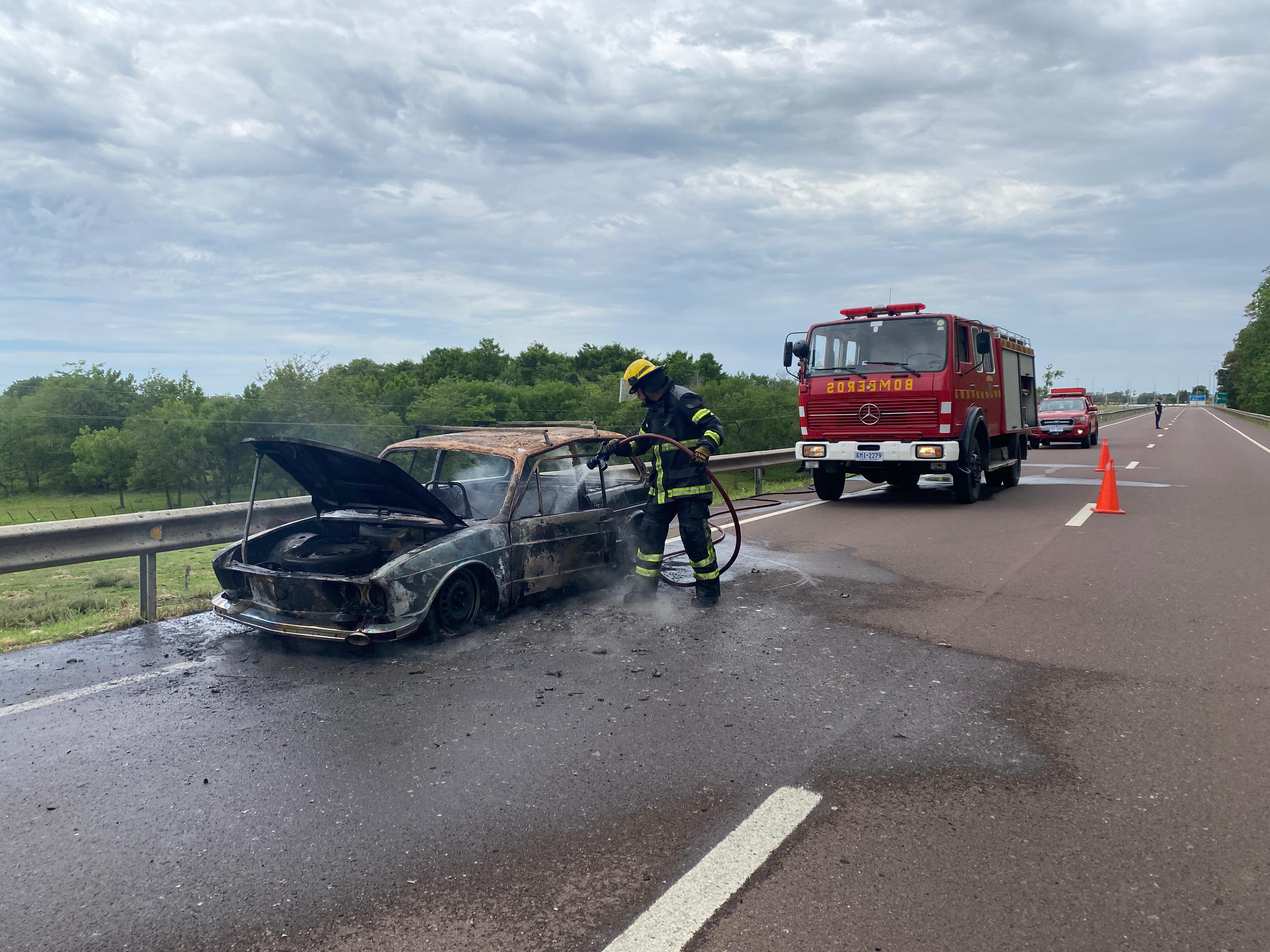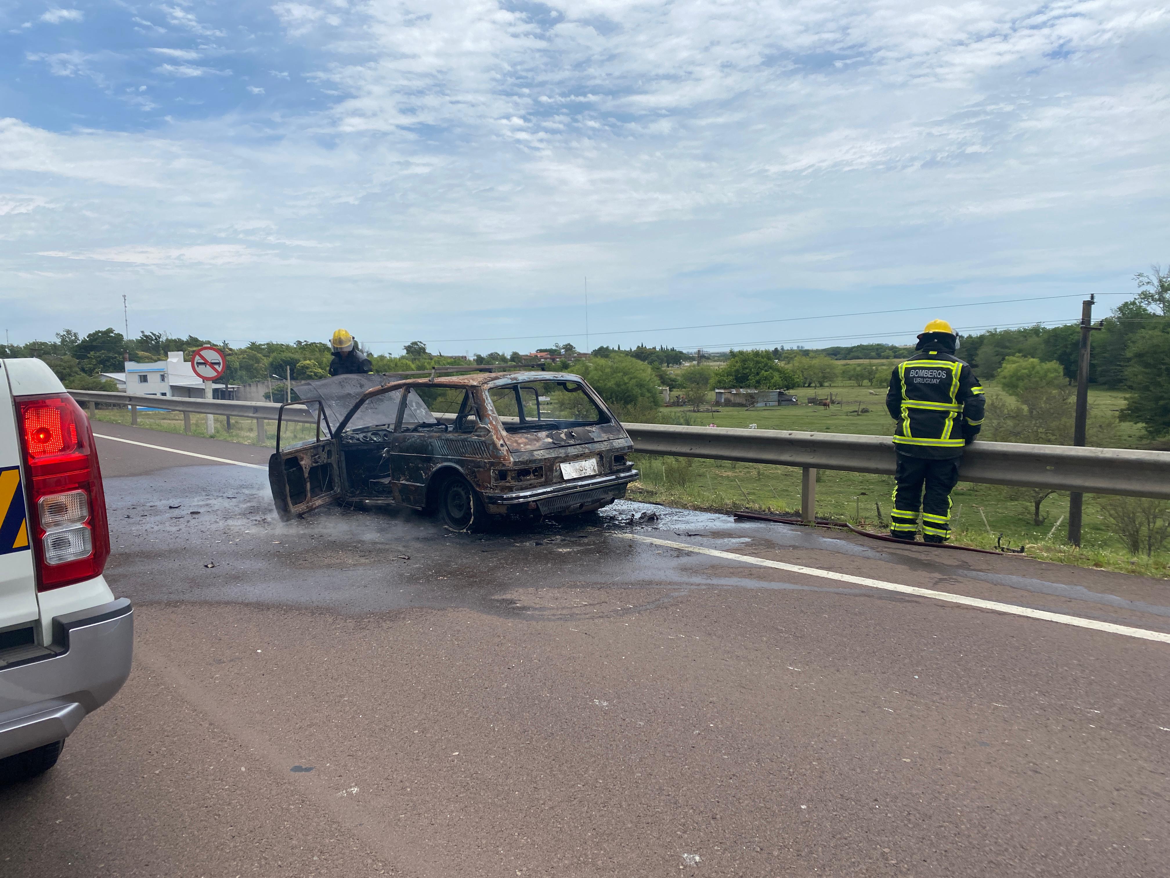 Presente en el lugar solicitado a la hora 12:15 se pudo constatar que se trataba de un incendio generalizado en vehiculo liviano (automóvil) marca Volkswagen modelo Brasilia año 1976 matricula SAF 3649.