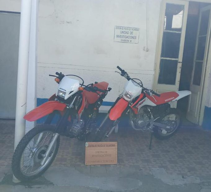 En la madrugada pasada, el propietario de un comercio ubicado en calle Ángela B. De López y Balsar Brum de la ciudad de Paso de los Toros, dio aviso en Comisaría Tercera del faltante de dos motos marca HONDA 0km.